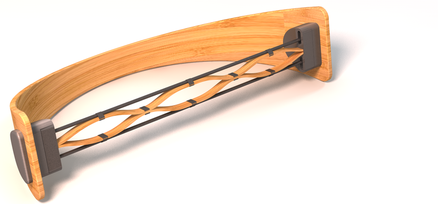 Mit kleinen Metallklammern werden die Bambus-schlinge und die äußeren Metallstangen zusammen-gehalten. Durch sie wird verhindert, dass sich die Tragevorrichtung durchbiegt und Flaschen heraus-fallen können.