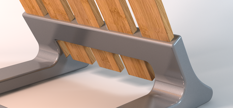Als stabiler Standfuß des Freischwingers ist ein Alu-Druckguß-Stativ vorgesehen. Dieses Material passt zum Einen farblich sehr gut zum Bambusmaterial und ist zum Anderen auch noch korrosionsbeständig.