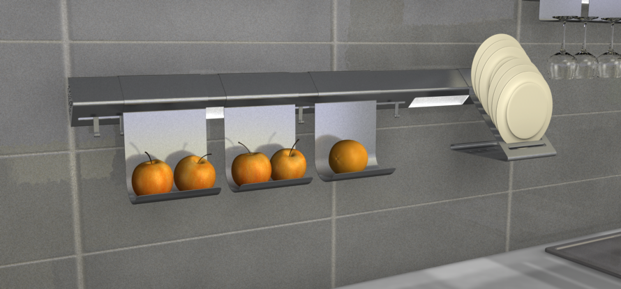 Die Obsthalter sind sehr minimalistisch aufgebaut und bestehen, wie auch fast alle anderen Module, aus nur einem einzigen gebogenen Edelstahlblech.