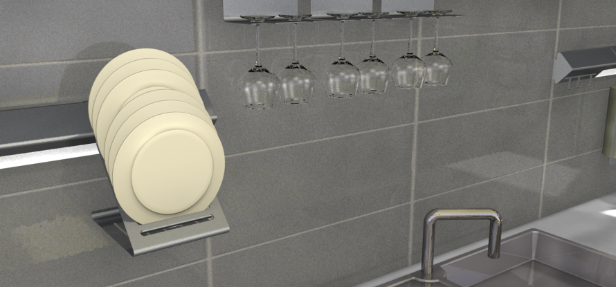 Das Tellermodul ist so aufgebaut, dass es zum Einen als Abtropfvorrichtung nach dem Abwasch und zum Anderen gleich als Verstauhalter für die täglich benutzten Teller dient