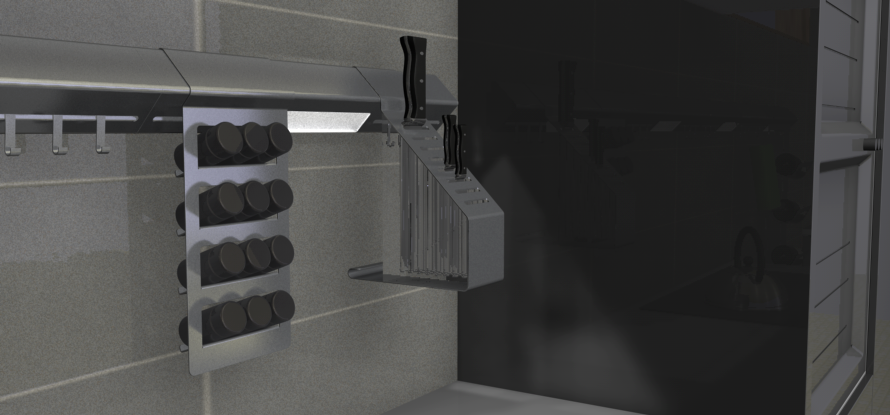 Noch wichtiger als der Wein sind natürlich viele gute Gewürze. Daran haben wir auch gedacht und ein bequem zugängliches und gut sichtbares Gewürzmodul entwickelt. Dieses besteht wieder aus einem Edelstahlblech, in das nachfüllbare Keramikdöschen eingesteckt werden.